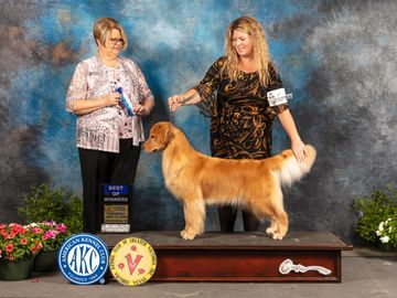 At the Golden Retriever of Greater St. Louis 2022 Award Banquet held in April 2023, we were honored to receive the Top Show Golden trophy for our male CH Dynasty's Legendary Spring Fling, Legend! What an incredible year!!! 1 Grand Bronze championship, 1 Grand championship, 4 Championships, Rally Immediate and Rally Novice! Plus Bimini became an Outstanding Dam for producing quality titled offspring!